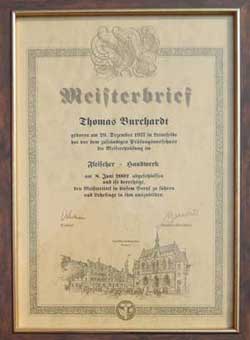 Seit dem 1. Mai 1997 besteht der handwerkliche Familienbetrieb Unser Fleisch beziehen wir von ausgesuchten Tieren aus der Region. Die Herstellung unserer Waren erfolgt nach unseren eigenen Rezepten und als Besonderheit dieser Region als Warmfleischverarbeitung. Dafür besitzen wir eine Zulassung der EU. Der Vorteil dadurch: das Fleisch behält viel mehr von seinem Eigengeschmack! |